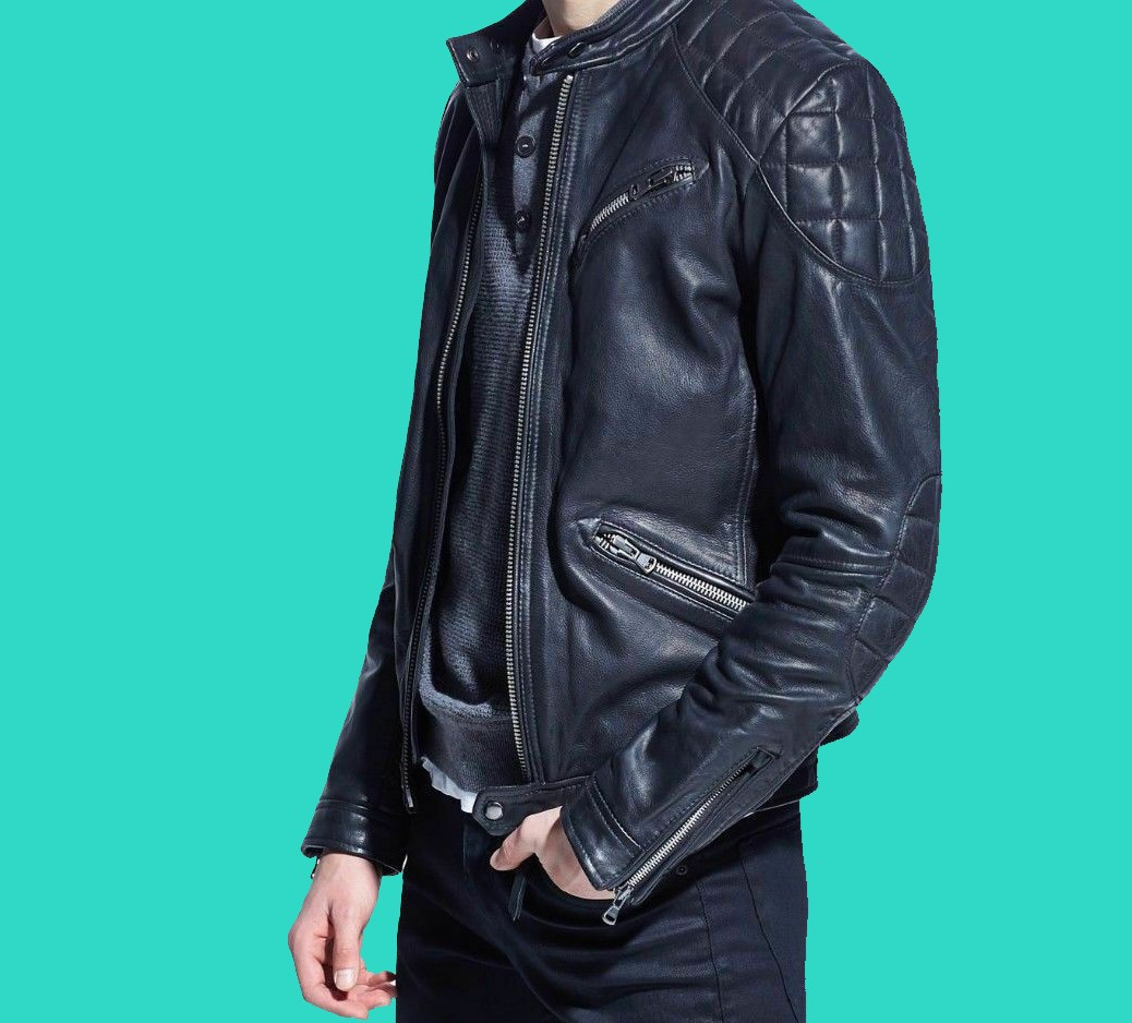 Men 100% Genuine Leather Jacket Biker Motorcycle Blue Leather Jacket