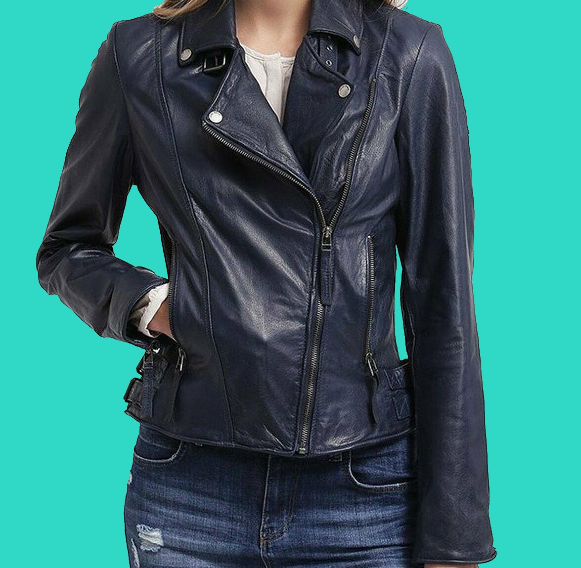 New Women's Real Leather Biker Classic Outerwear Leather Jacket