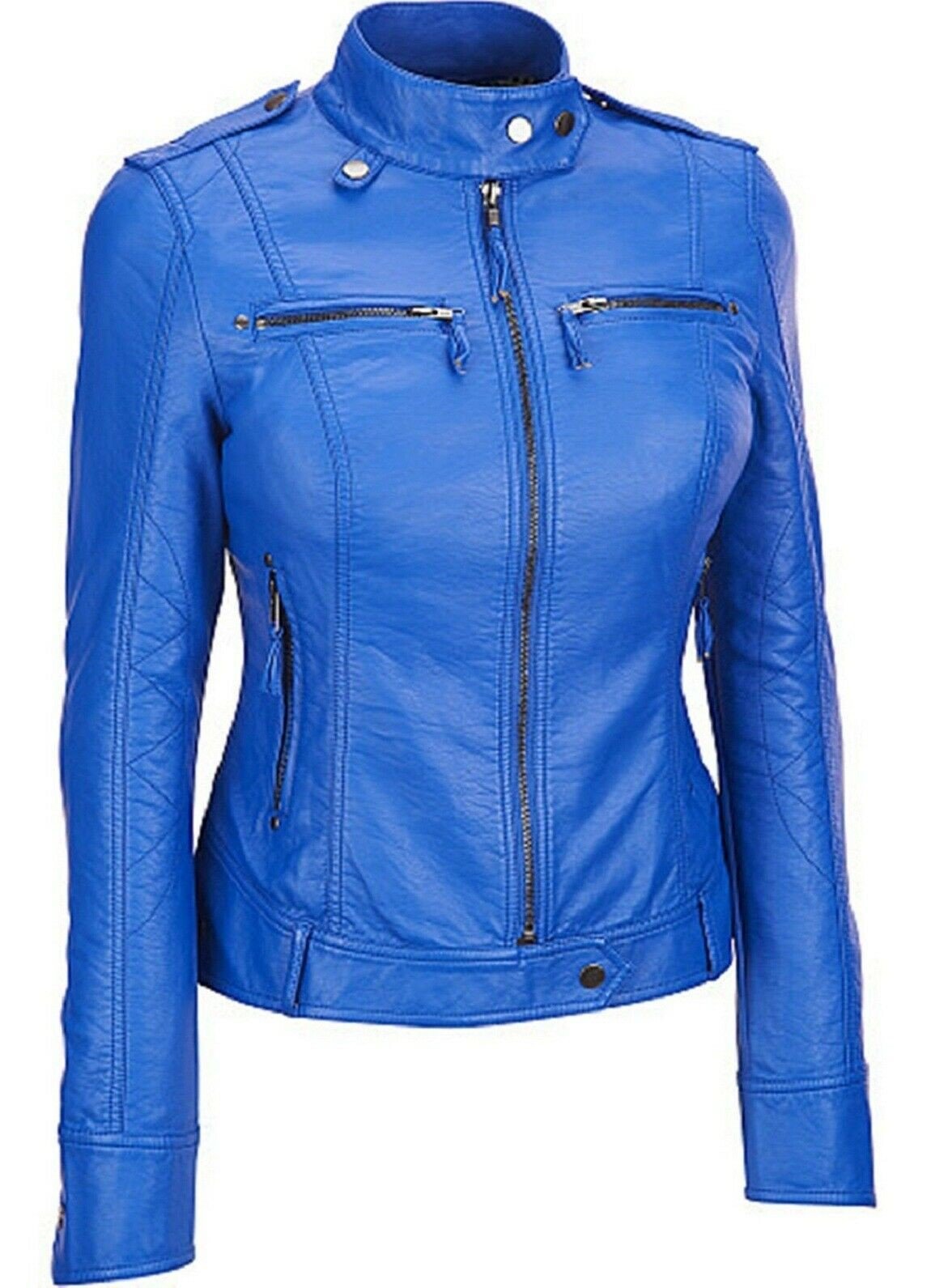 100% New Women's Leather Jacket Outerwear Motorcycle Biker Jacket