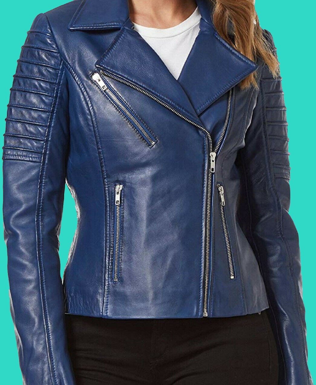100% New Women's Lambskin Stylish Leather Bomber Biker Jacket