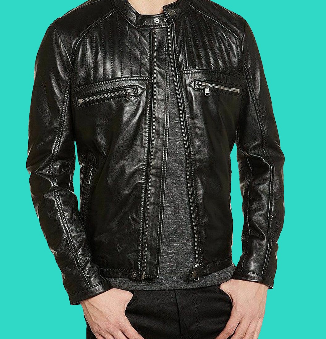 Men's Real Leather Jacket Bomber Biker Motorcycle Genuine Lambskin