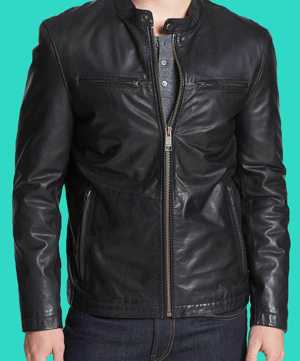 New MEN Genuine Lamb Leather Jacket Black Slim Fit Biker Motorcycle
