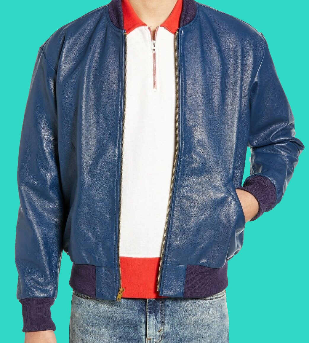 Mens Leather Jacket 100% Genuine Biker Motorcycle Blue Leather Jacket