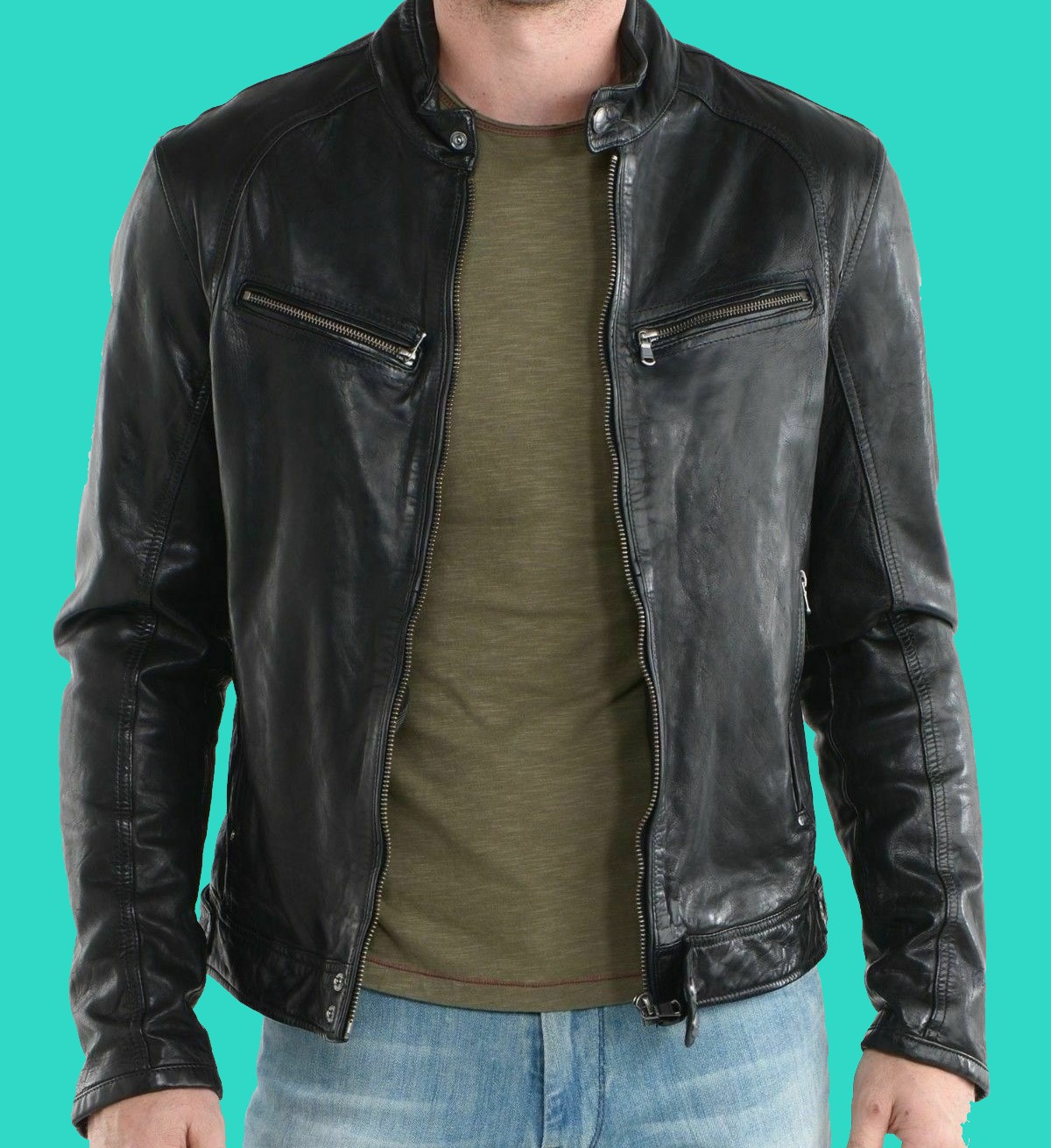 New Men's Leather Jacket Black Slim fit Motorcycle
