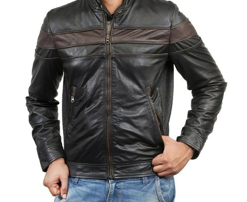 Men's Real Lambskin Leather Jacket Black Slim fit Biker Motorcycle