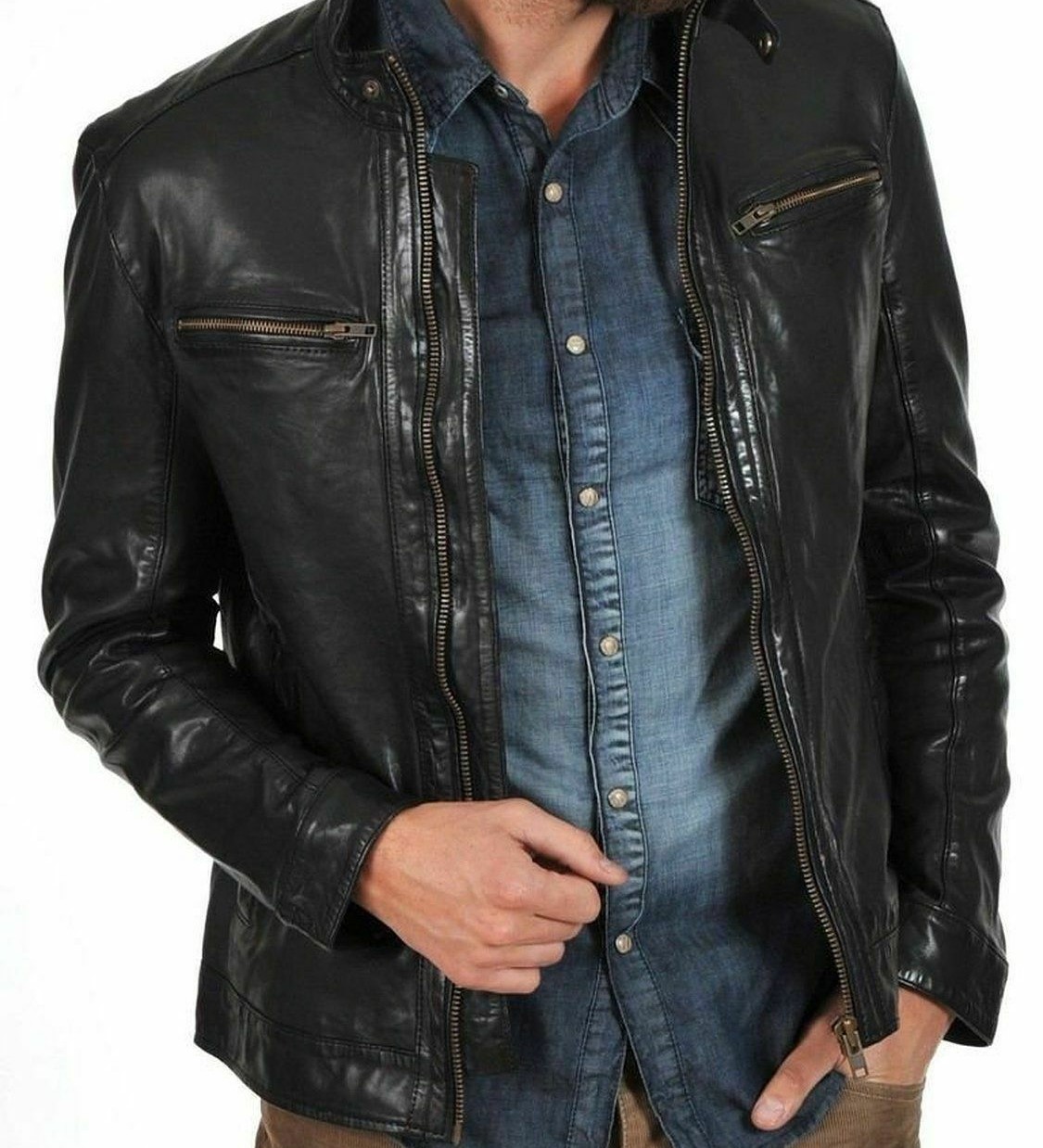 New Men's Leather Jacket Real Lambskin Biker Motorcycle Jacket