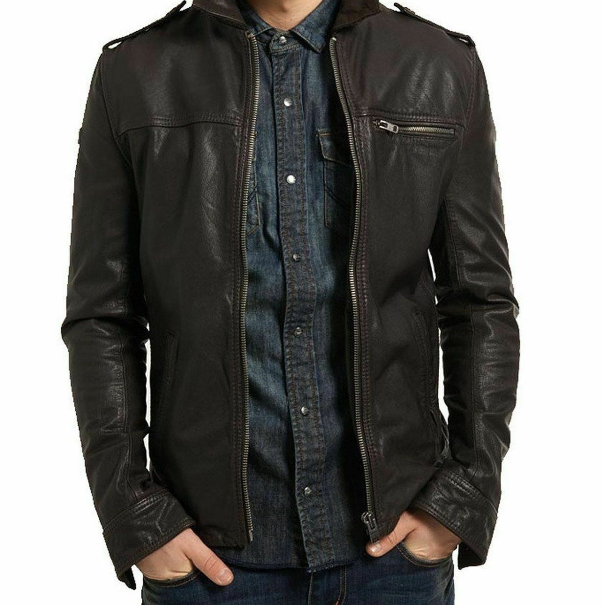 Mens Leather Jacket Motorcycle Biker Slim Fit Real Soft Pure