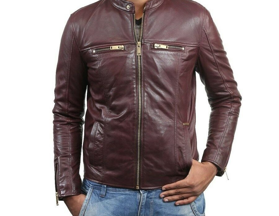 Men's Real Leather Jacket Bomber Biker Motorcycle Genuine