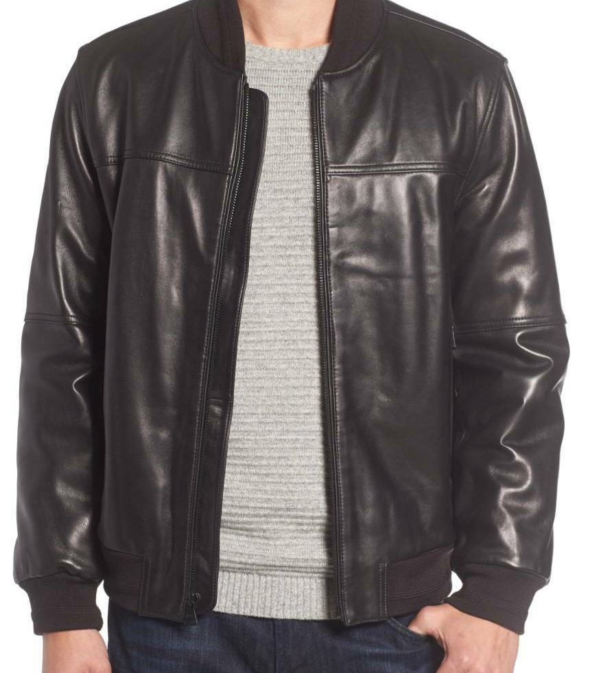 Men's Real Lambskin Leather Jacket Biker Bomber Black Classic