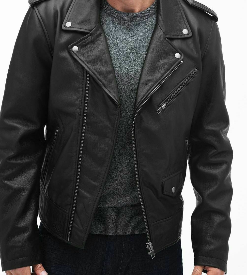Men's Real Lambskin Leather Jacket Shirt Biker Motorcycle