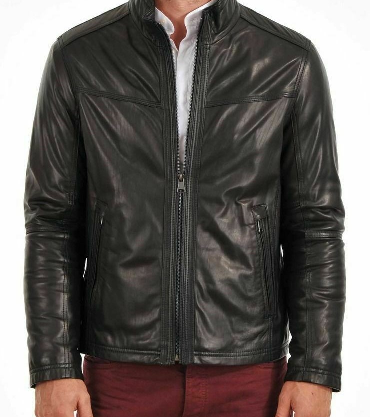 Mens Leather Jacket Motorcycle Biker Slim Fit Real Soft Pure