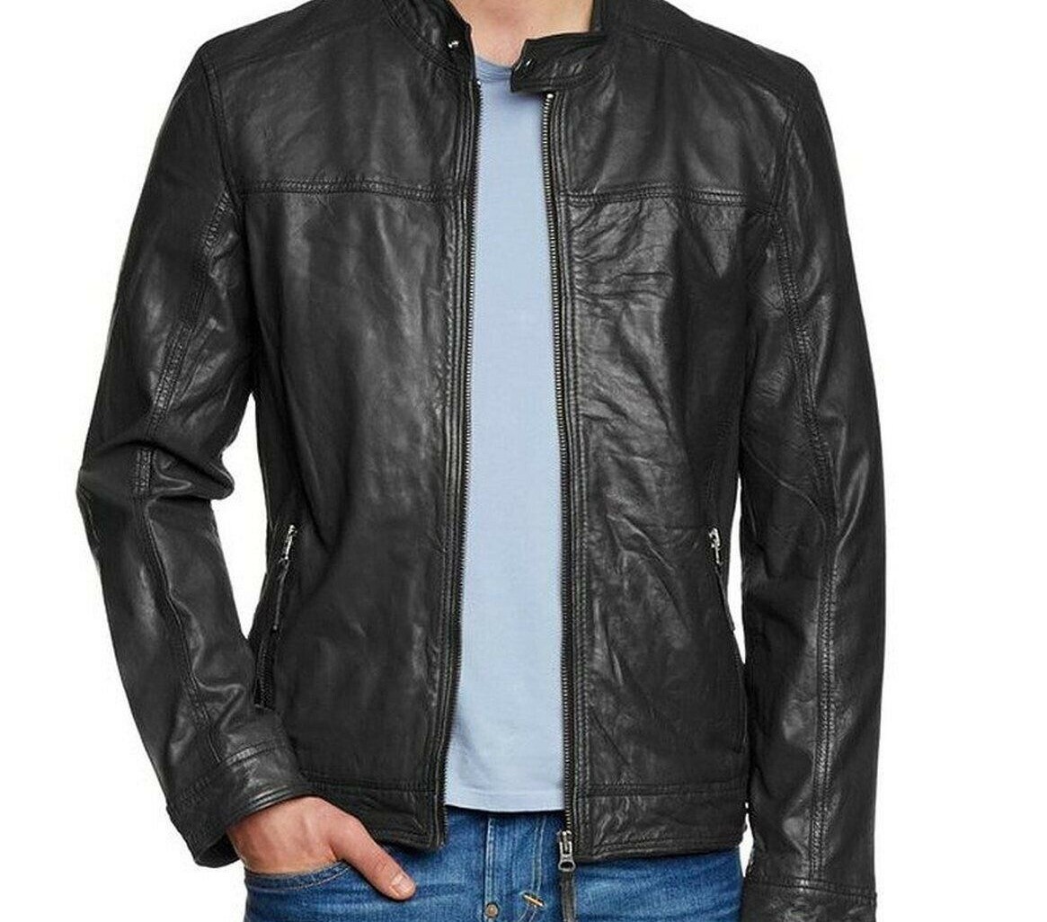 Mens Leather Jacket Motorcycle Biker Real Soft Lambskin Pure Jacket