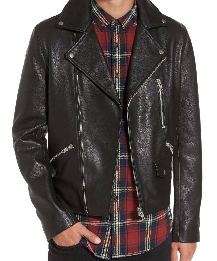 Men's Real Leather Jacket Biker Motorcycle Genuine Lambskin Black