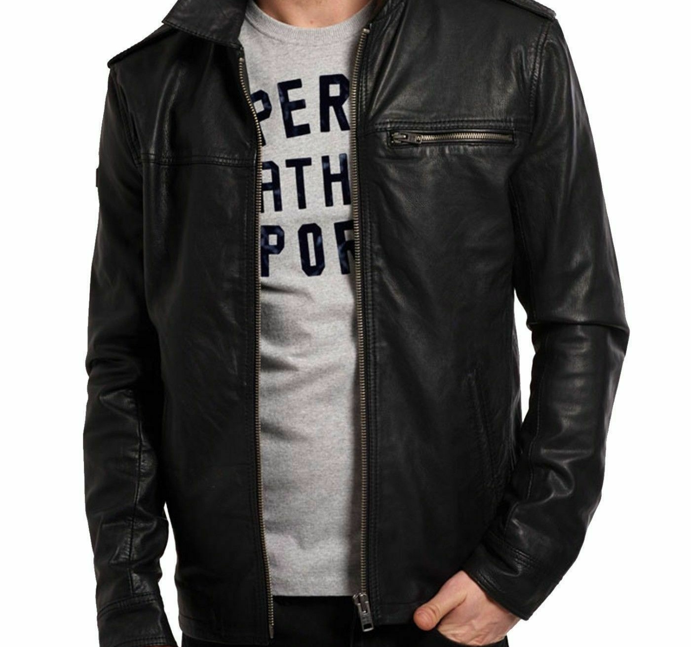 Men's Real Lambskin Leather Jacket Black Slim fit Biker Motorcycle