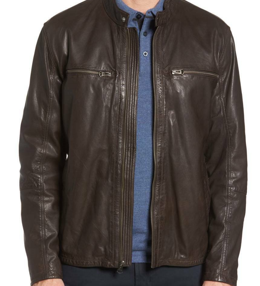 Mens LeatherJacket 100% Genuine Biker Motorcycle Brown Leather Jacket