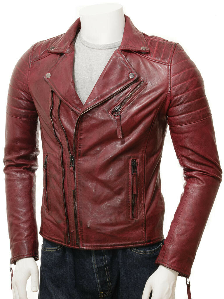 Mens LeatherJacket 100% Genuine Biker Motorcycle Brown Leather Jacket