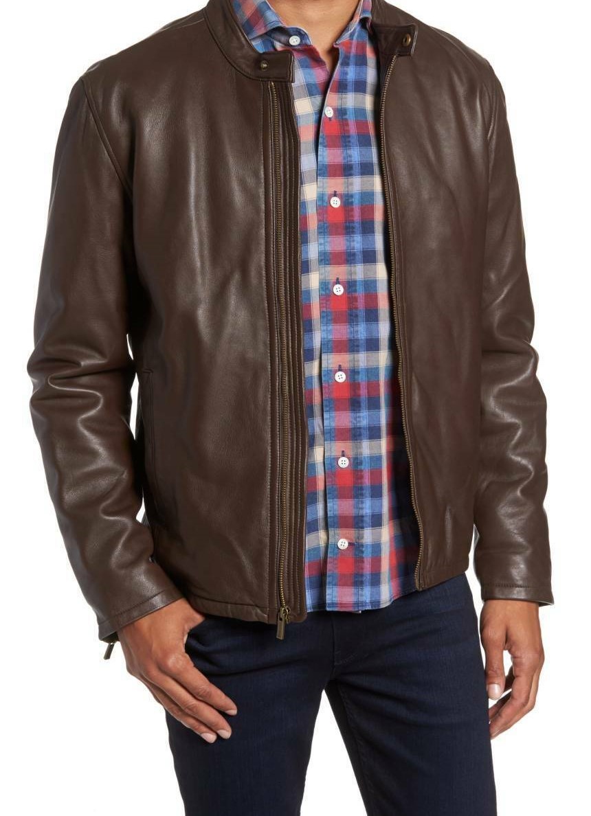Mens Leather Jacket 100% Genuine Lambskin Brown Leather Jacket