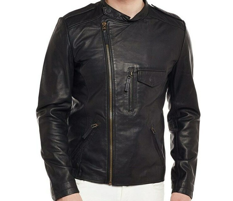 Men Real Leather Jacket BomberBiker Motorcycle Genuine Lambskin Black