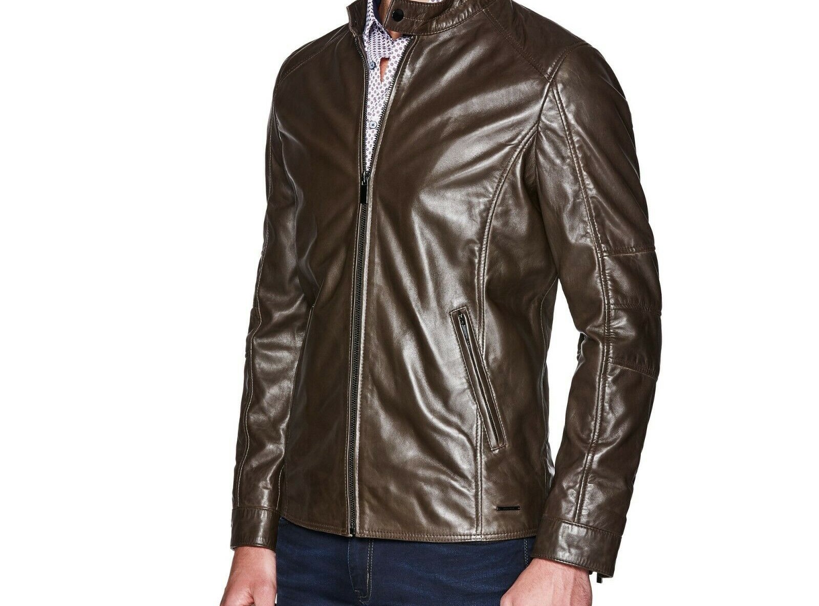 Men LeatherJacket 100% Genuine Biker Motorcycle Brown Leather Jacket