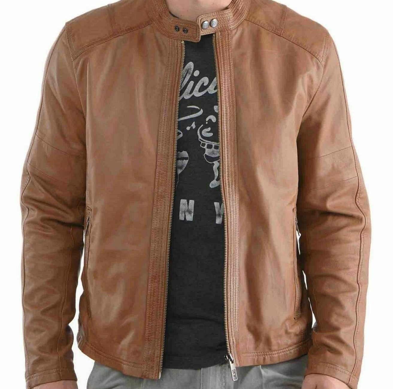 Men LeatherJacket 100% Genuine Biker Motorcycle Brown Leather Jacket