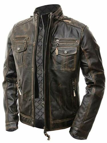 Men's Leather Jacket Genuine Lambskin Motorcycle Slim Fit Biker Vintage Jacket