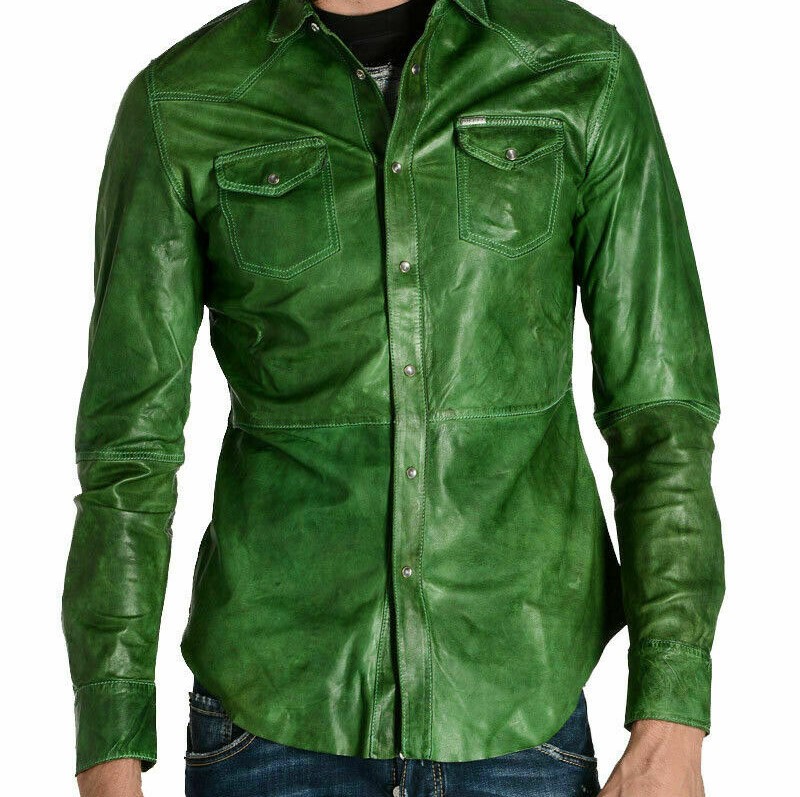 Men's Leather Shirt Genuine Lambskin Casual Full Sleeves Vintage Jacket