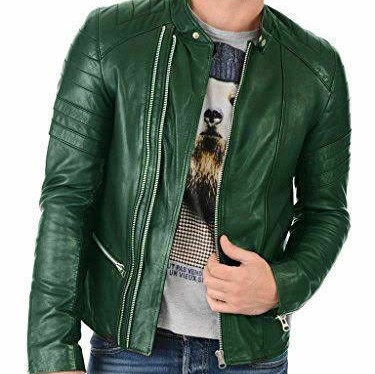 Men's Genuine Lambskin Leather Stylish Jacket Biker Motorcycle Slim Fit Coat