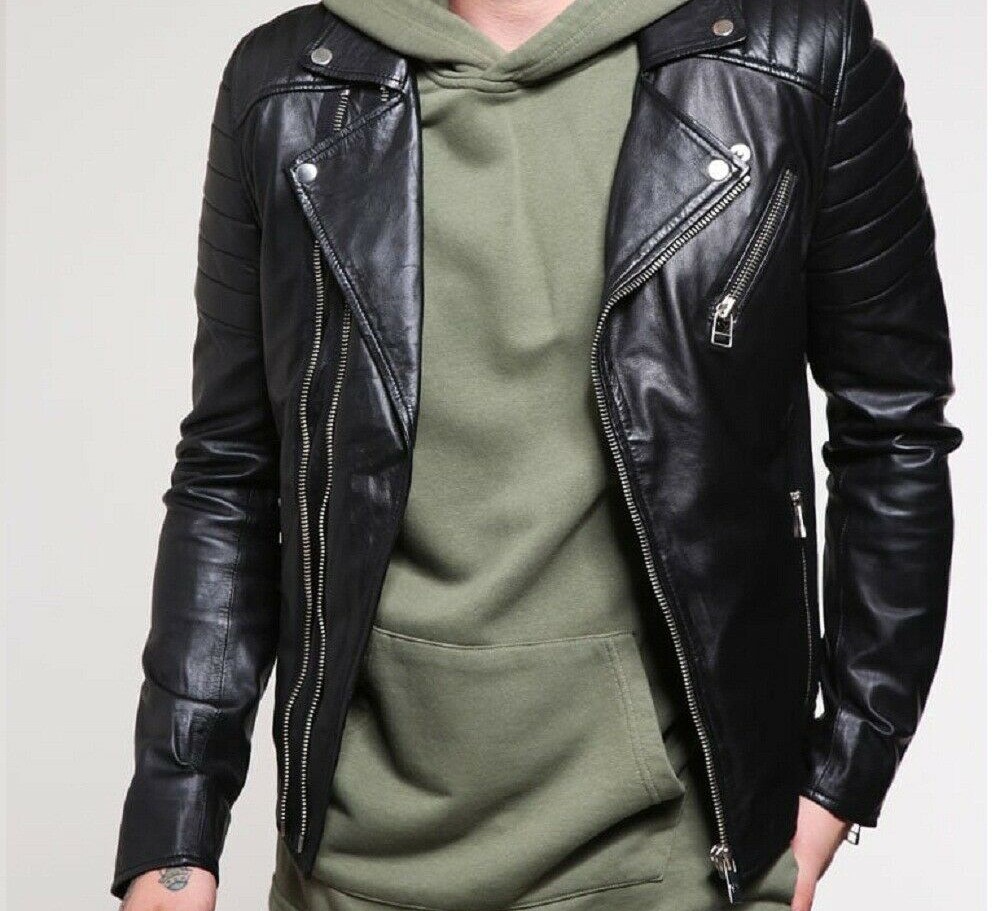 Men's Stylish biker jacket real leather sheepskin jacket