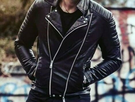 Men's Leather Jacket Motorcycle Quilted Real Leather Biker Jacket #19