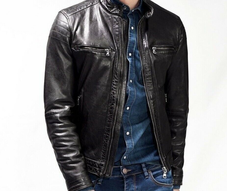 Men's Leather Motorcycle Jacket 100% Genuine Leather Skinny Fit Jacket