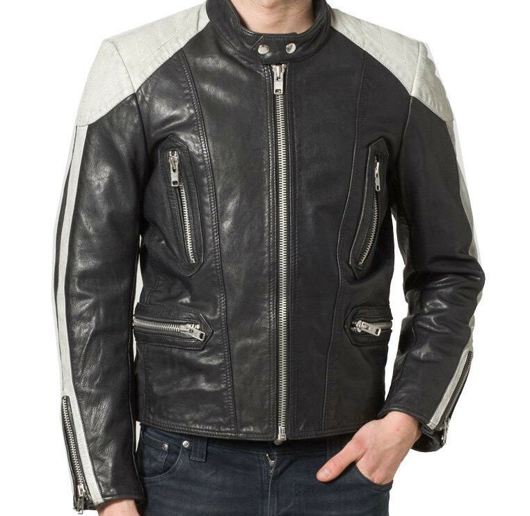 New Men's Genuine Cow Leather Slim Fit Biker Motorcycle Jacket For Men