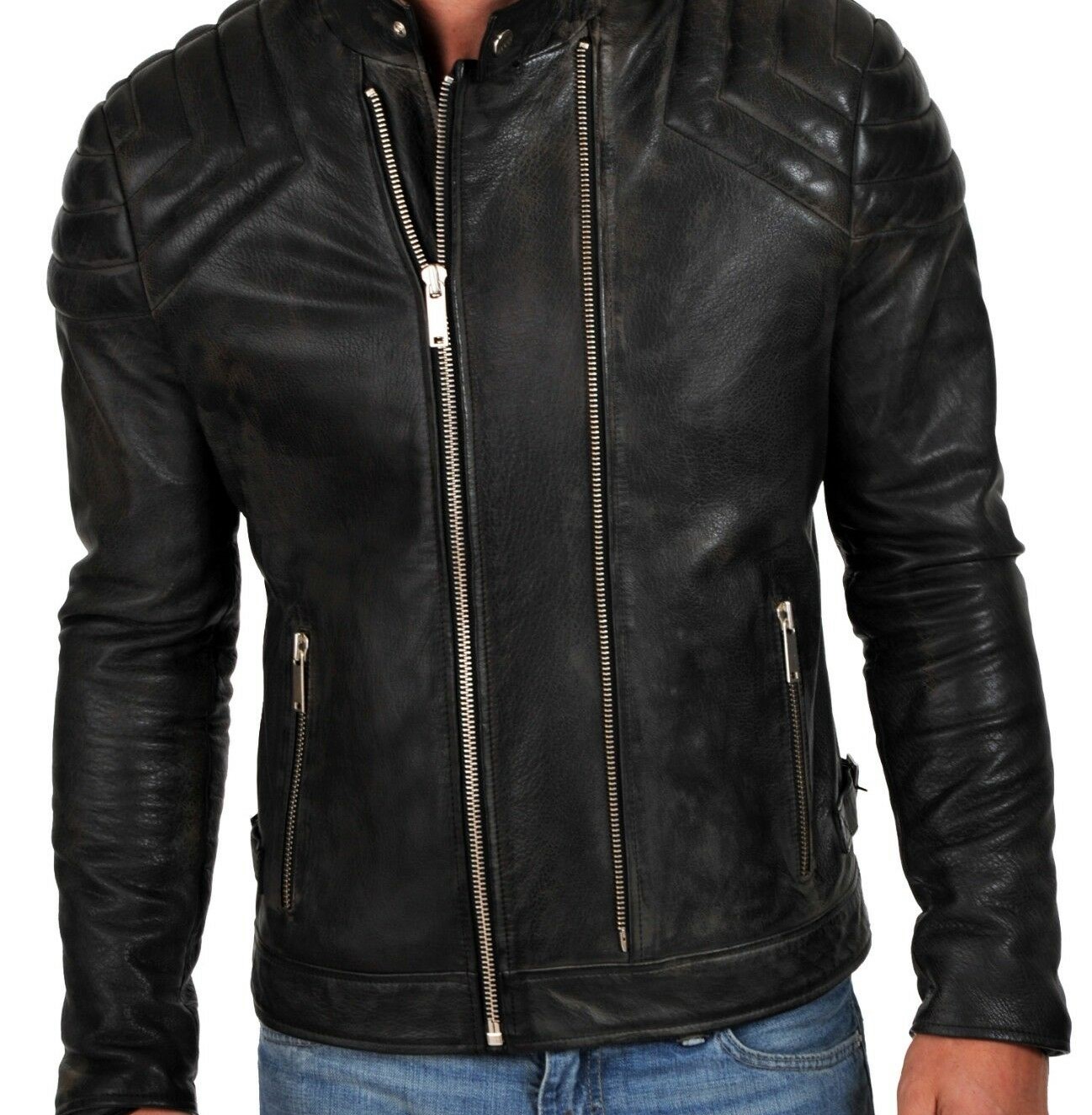 Men's Genuine Lambskin Leather Jacket Slim fit Motorcycle jacket