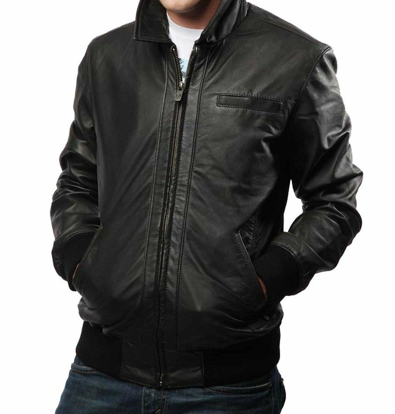 New Mens Leather Jacket Slim Fit Biker Motorcycle Genuine Leather Coat