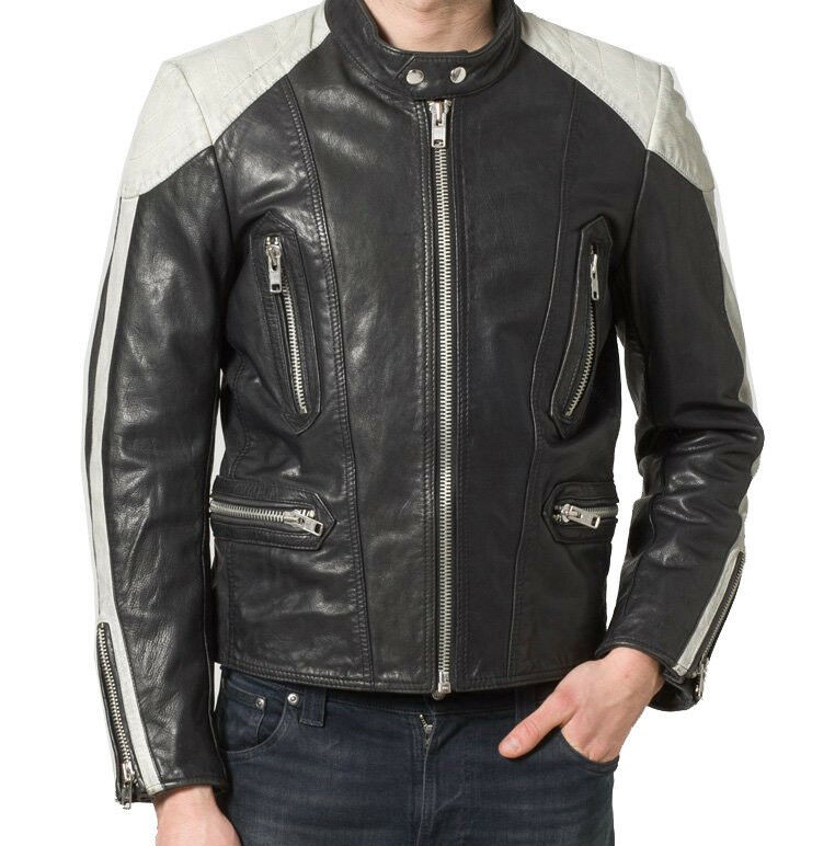 New Men's Genuine Cow Leather Slim Fit Biker Motorcycle Jacket For Men