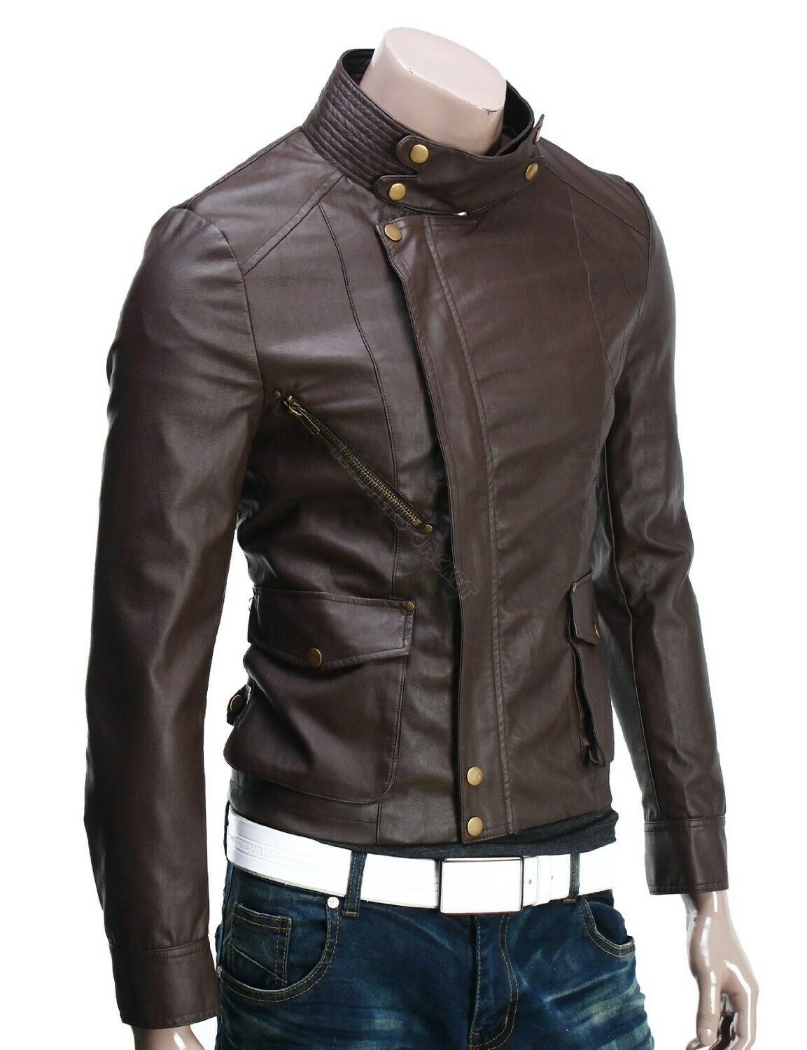 Men's Stylish zipper jacket real leather sheepskin jacket