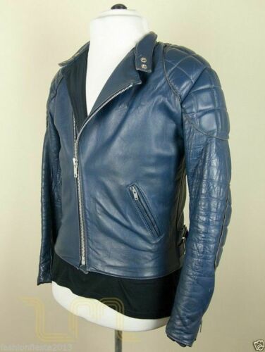 Mens motorcycle blue genuine real Leather Jacket