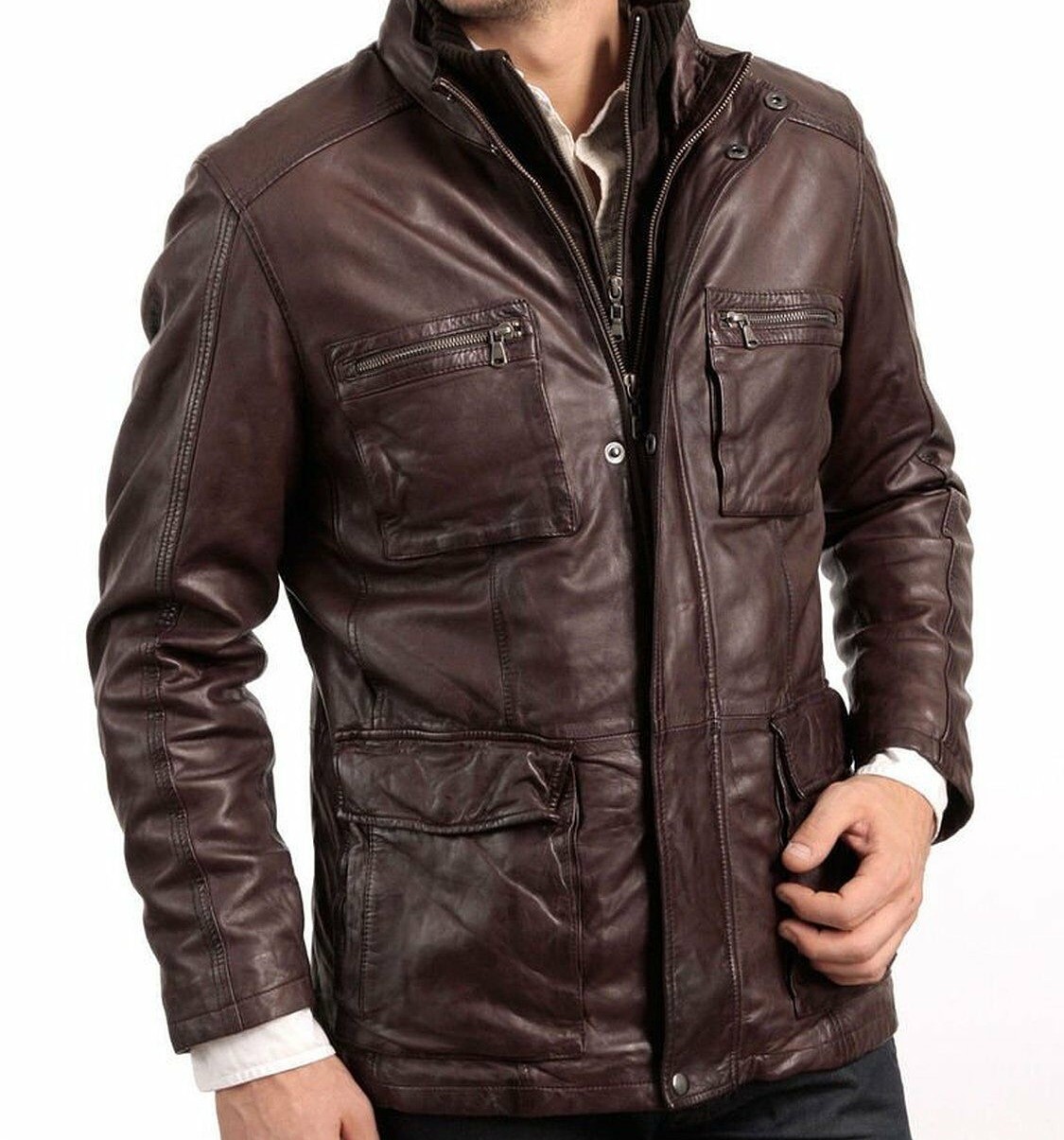Men Leather Jacket Slim Fit Biker Motorcycle Genuine Lambskin Jacket
