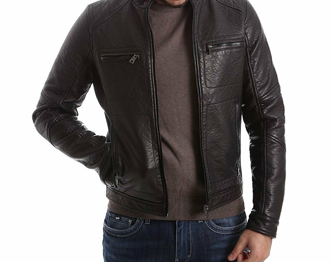 Men's Leather Jacket Real Lambskin Zipper jacket