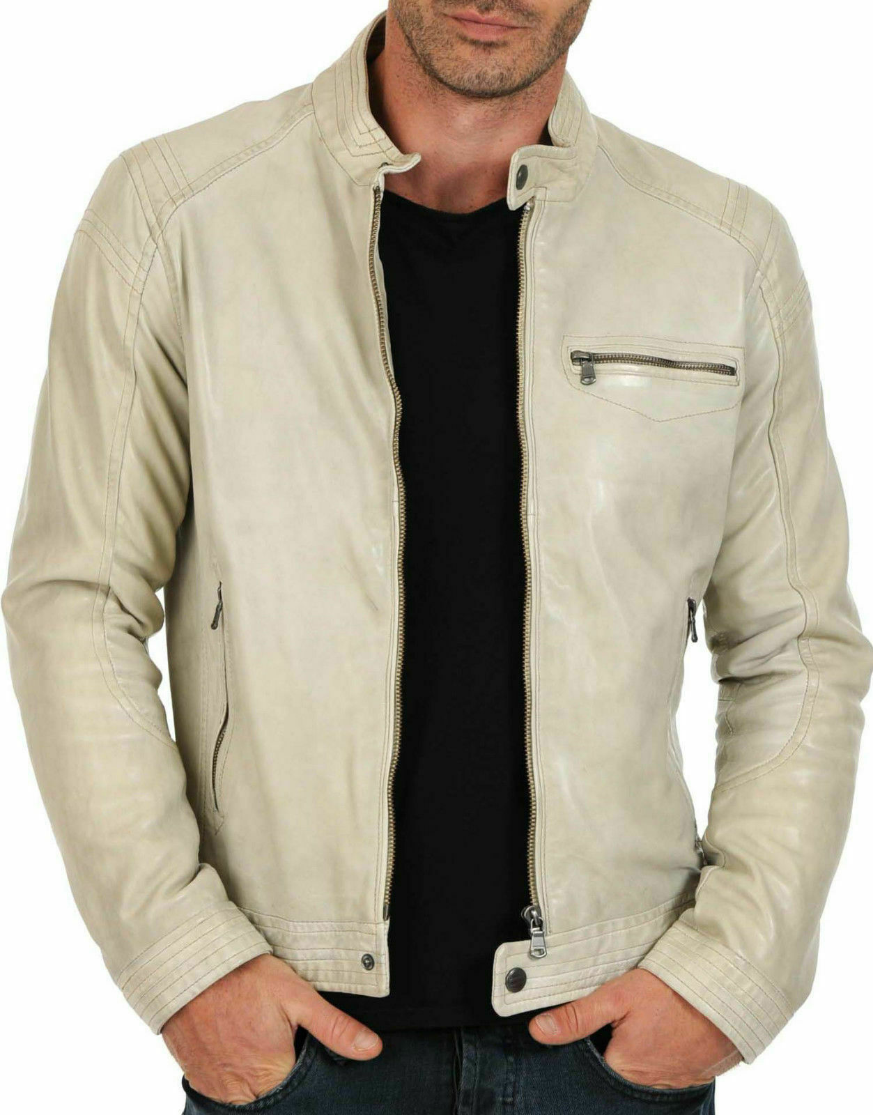 Men Leather Jacket 100% Genuine Lambskin Zipper Leather Jacket