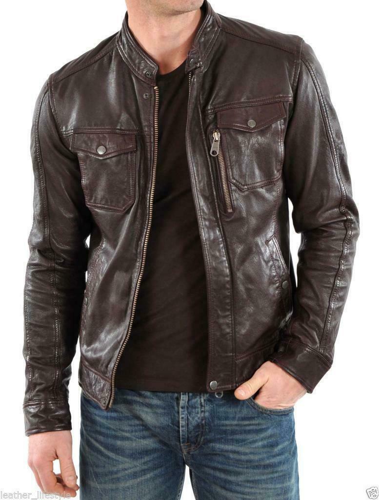 Men’s Zipper Leather Jacket Genuine Real Lambskin Leather Jacket Slim Fit