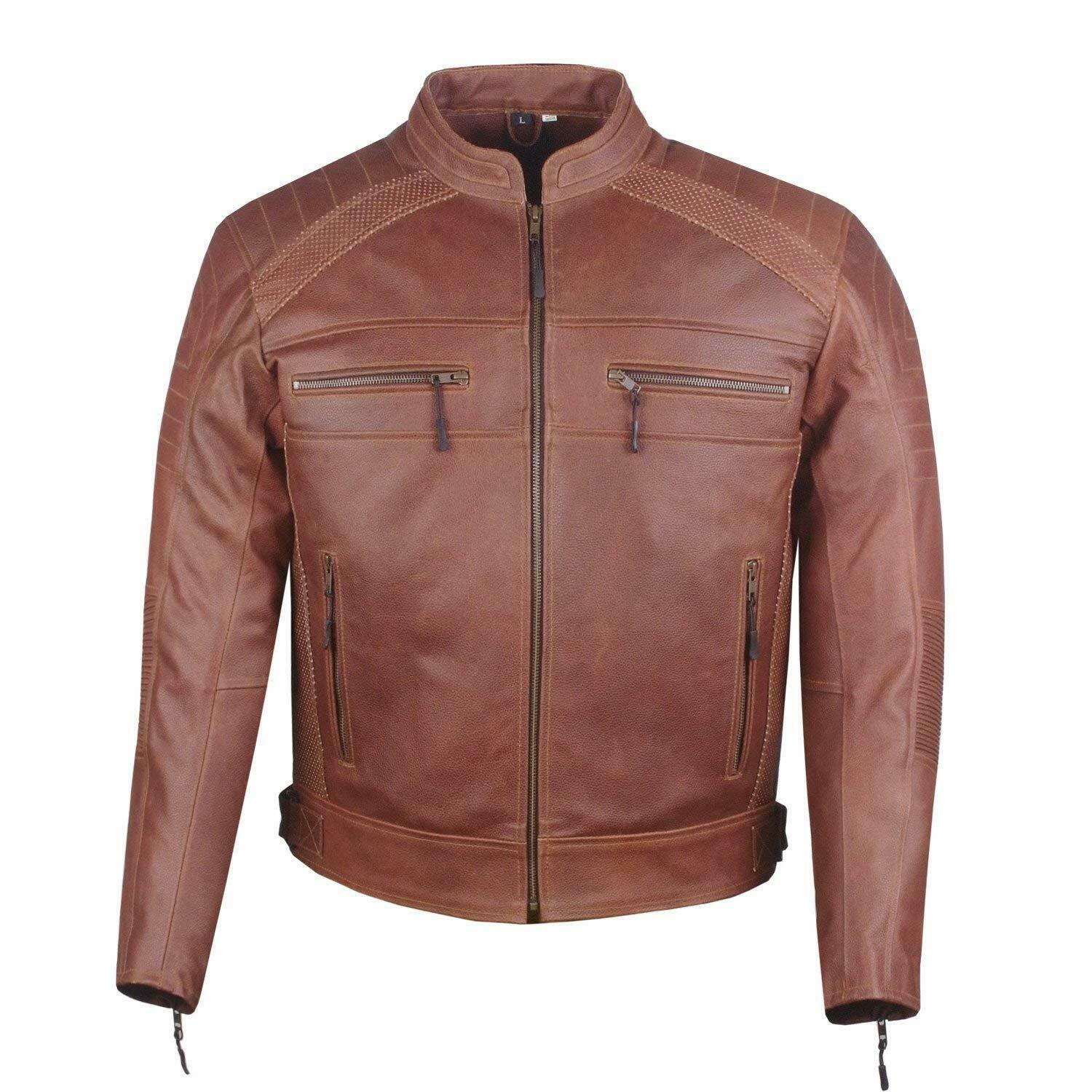 Men's Genuine Lambskin Leather Jacket New Zipper Leather Jacket