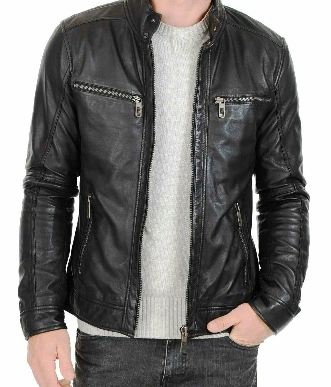 Leather Jacket Men Zipper jacket Real Lambskin Men's Jacket