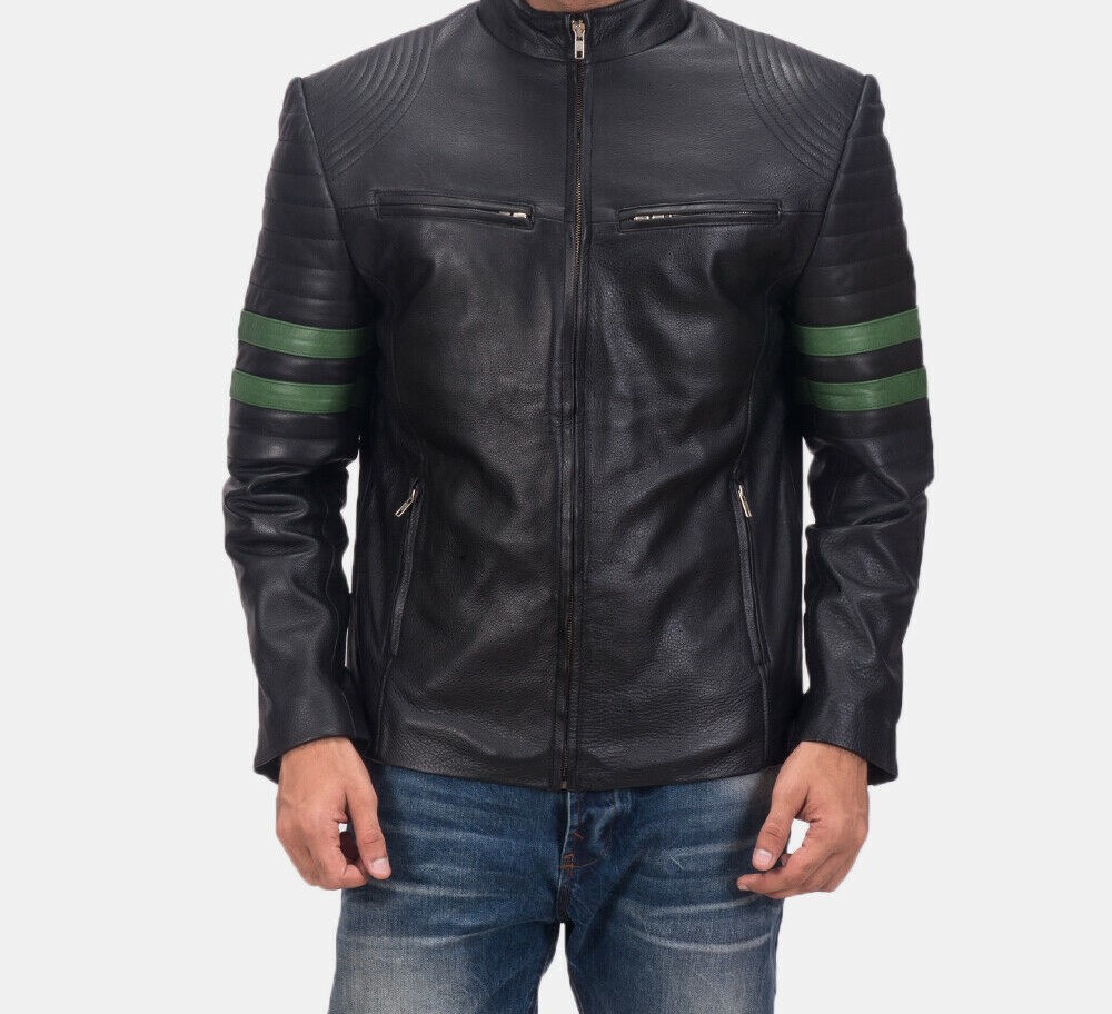 Mens Cafe Racer Motorcycle Green Stripes Fight Mayhem Black Biker Leather