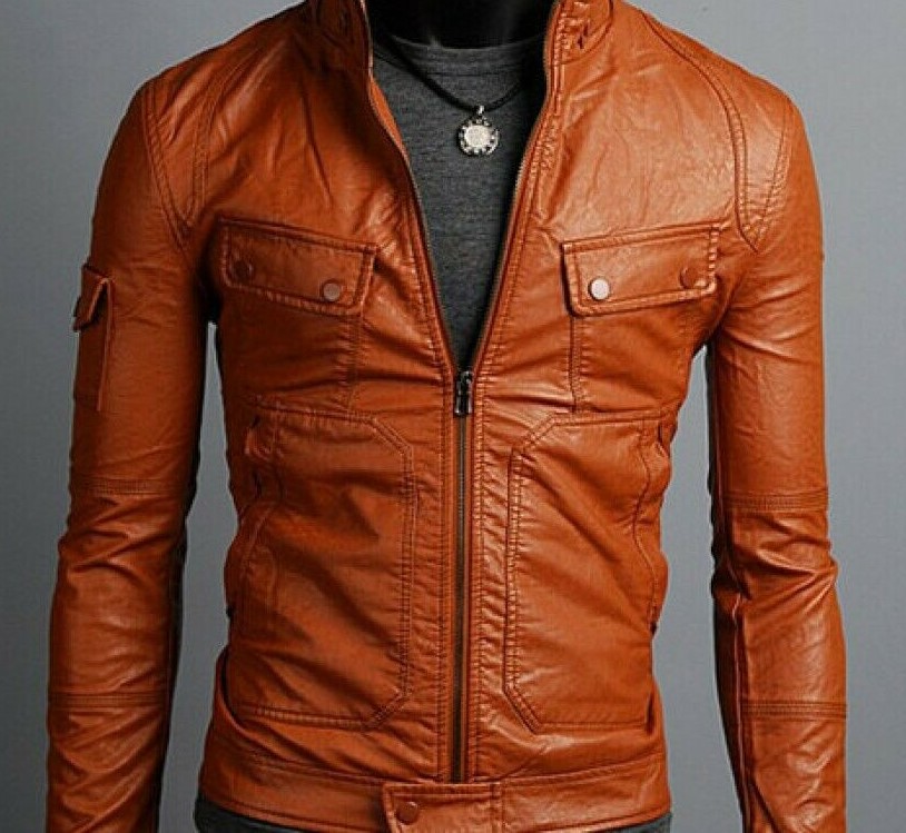Men Real Brown Pure Leather Motorbike Motorcycle Club Party Print Jacket