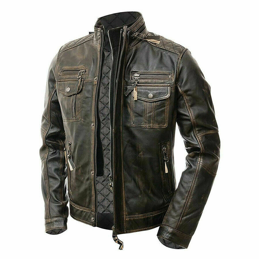 New Cafe Racer Vintage Men's Distressed Biker Brown Jacket