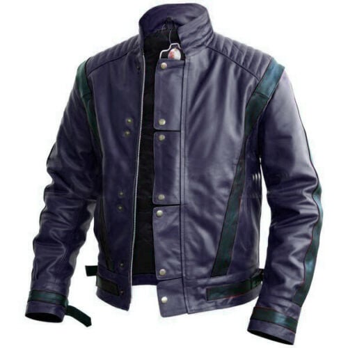 Handmade Men Michael Jackson Style Blue Leather Fashion Jacket, Men Biker Jacket