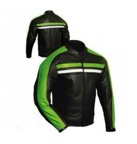 Latest Men's Black White Green Striped Biker Leather Jacket,Men's Stylish jacket