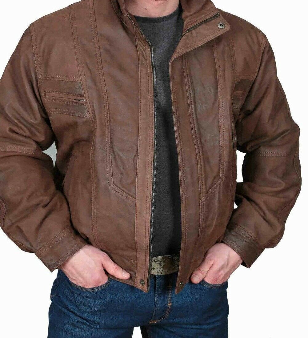 Men Leather Jacket 100% Genuine Biker Motorcycle Brown Leather Jacket