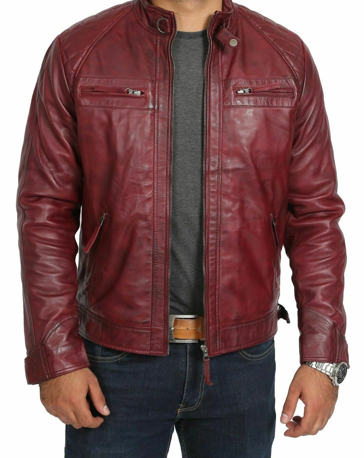 Men Leather Jacket 100% Genuine Biker Motorcycle Brown Leather Jacket