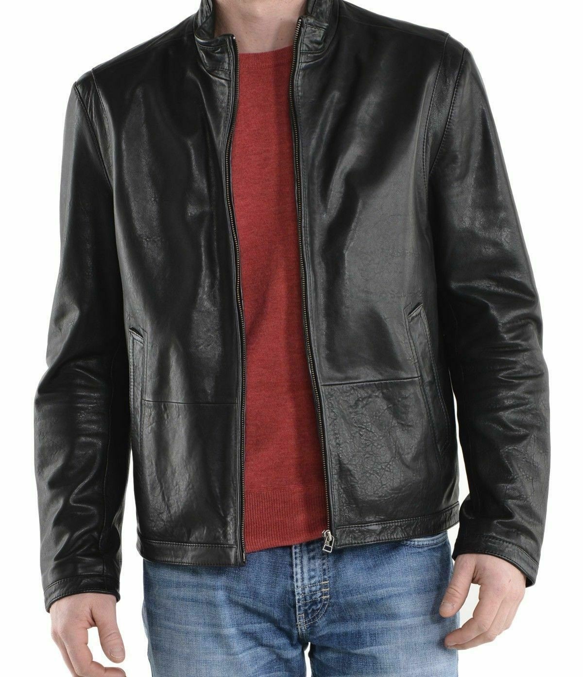 Men's Stylish Real Leather Jacket Black Slim Fit Biker Motorcycle